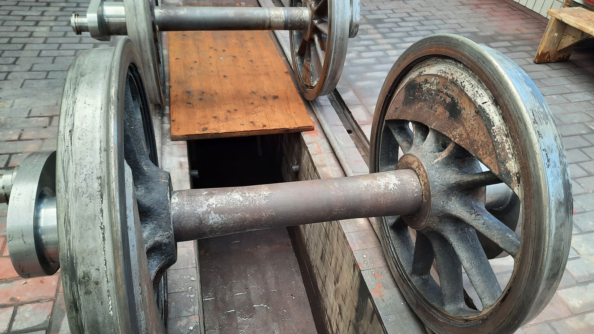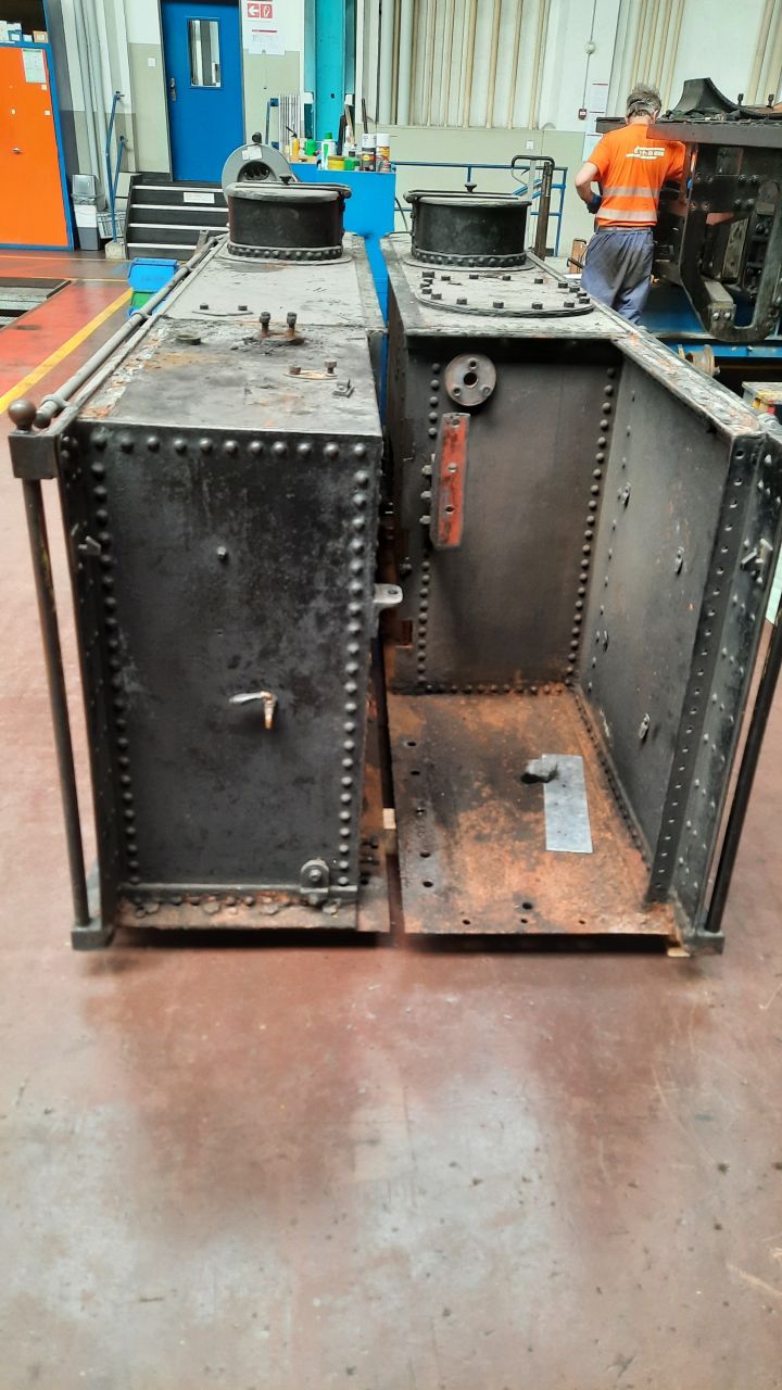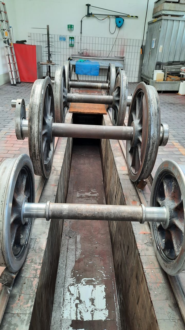 In Grossbritannien (bei der North Norfolk Railway) ist der Kessel ebenfalls bei der Materialprüfung (natürlich auch zerstörungsfrei).